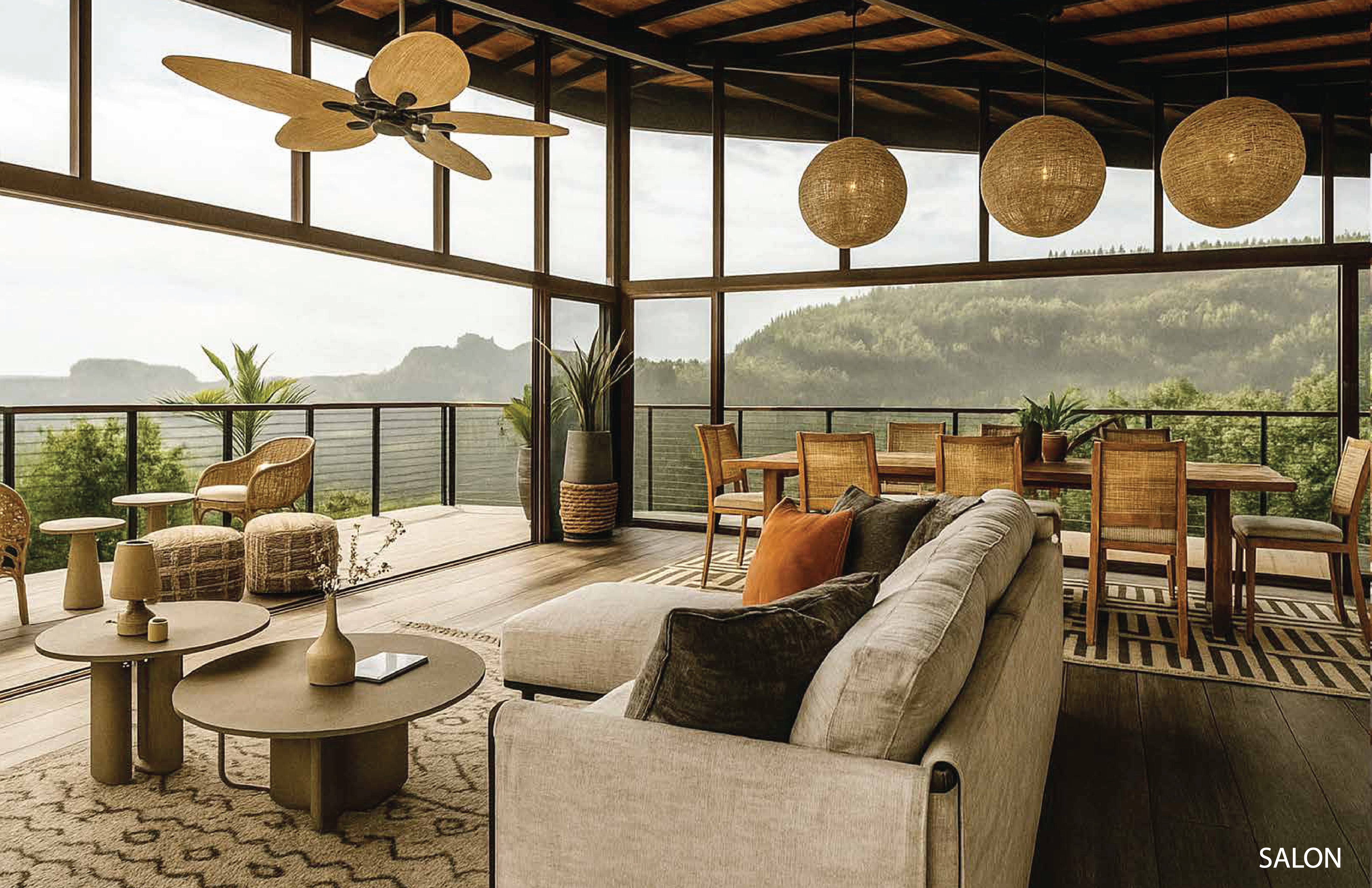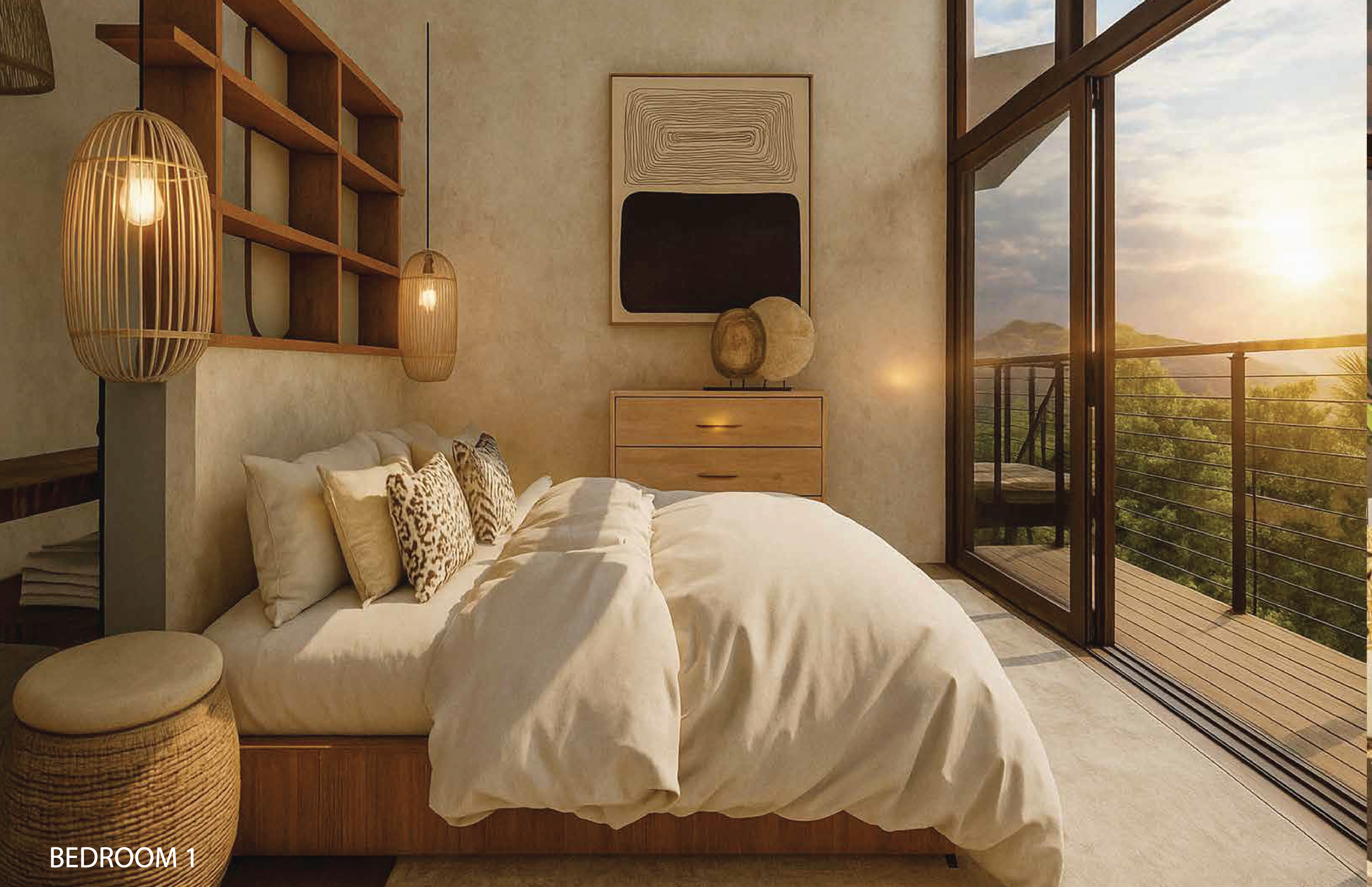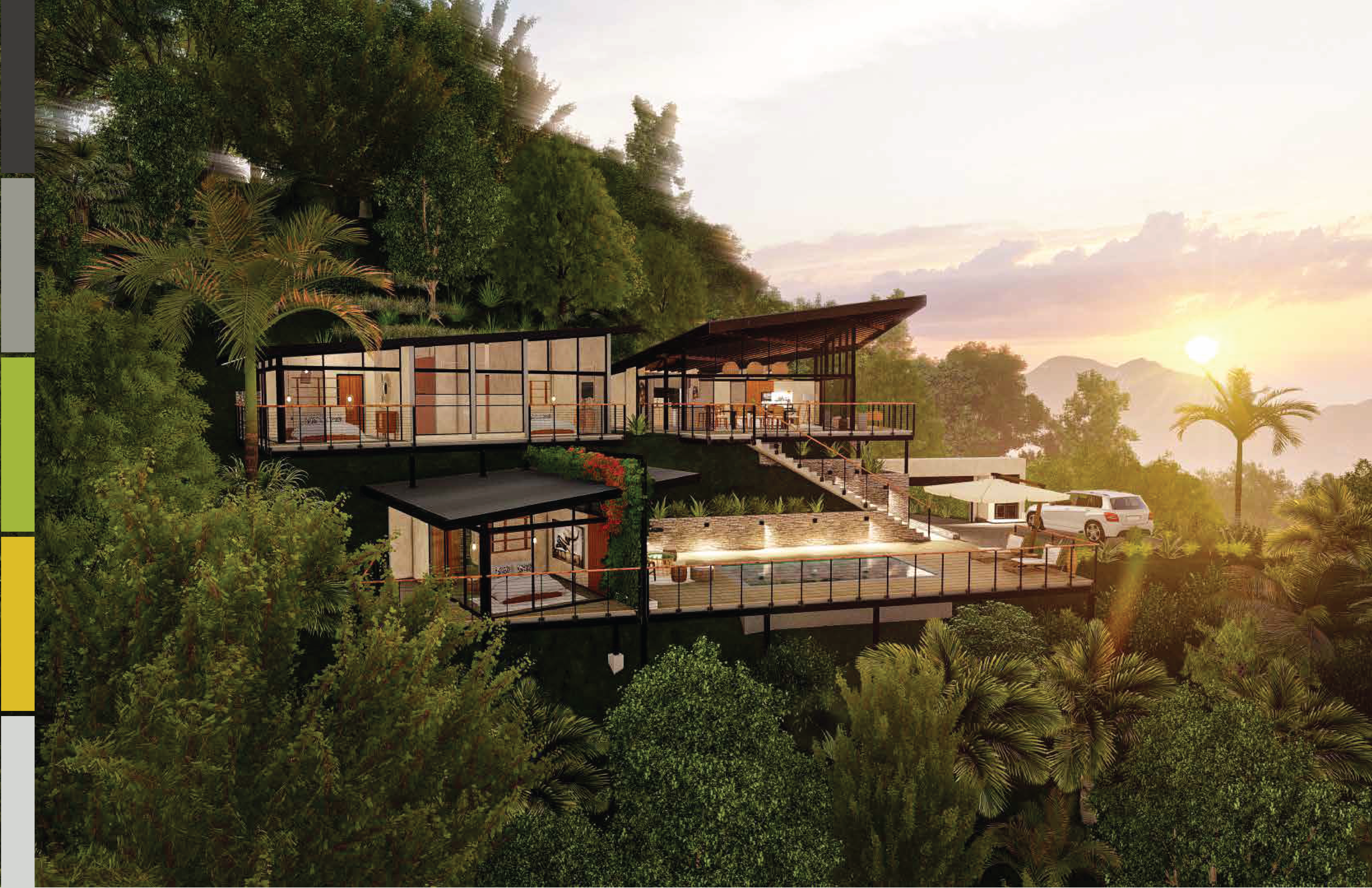 El diseño arquitectónico se adapta cuidadosamente a la topografía natural del terrenoabrazando la montaña sin modificarla y respetando el entorno paisajístico. Esta integración asegura una convivencia armónica con el ambiente, maximizando la ventilación cruzada, la iluminación natural y las vistas hacia el paisaje.